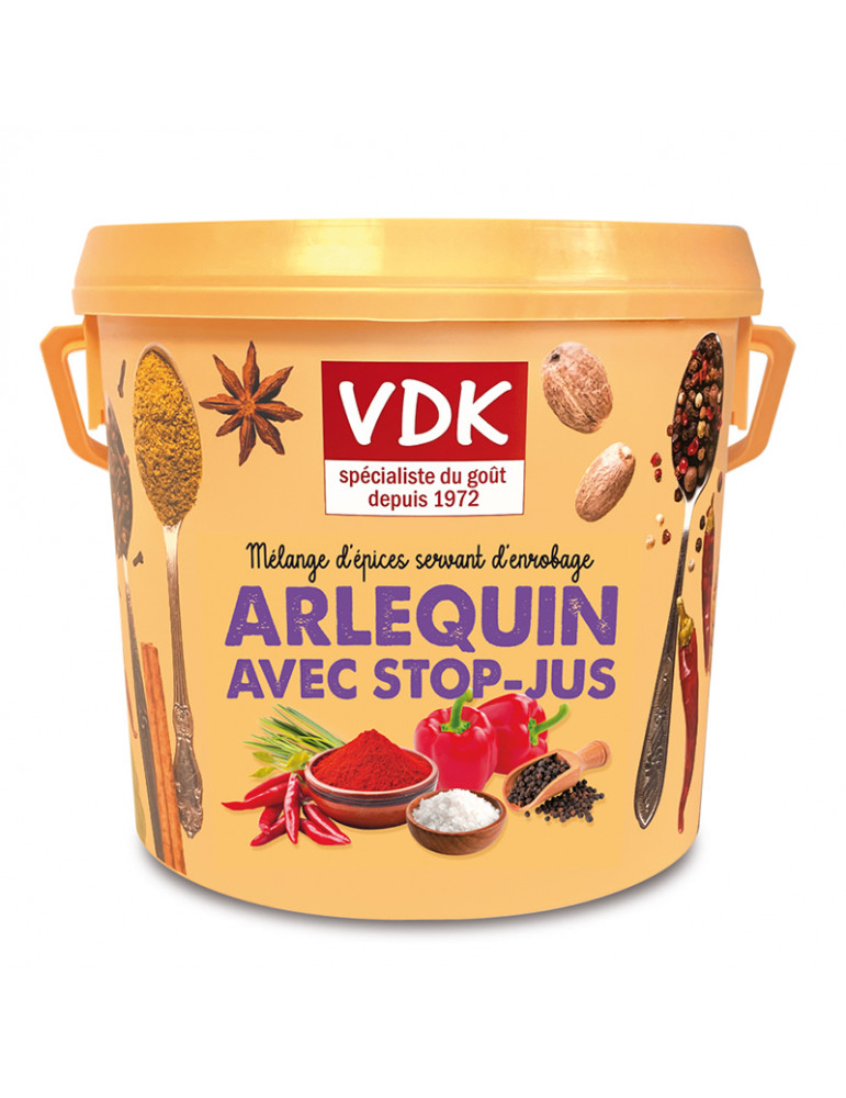 L’ Arlequin avec stop-jus contient un sel frotté dans la graisse d’une épice telle que la muscade.