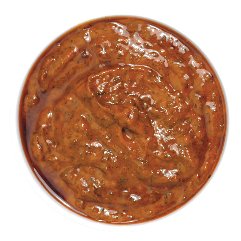 Cette marinade de couleur rouge, onctueuse se marie agréablement